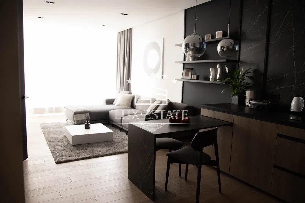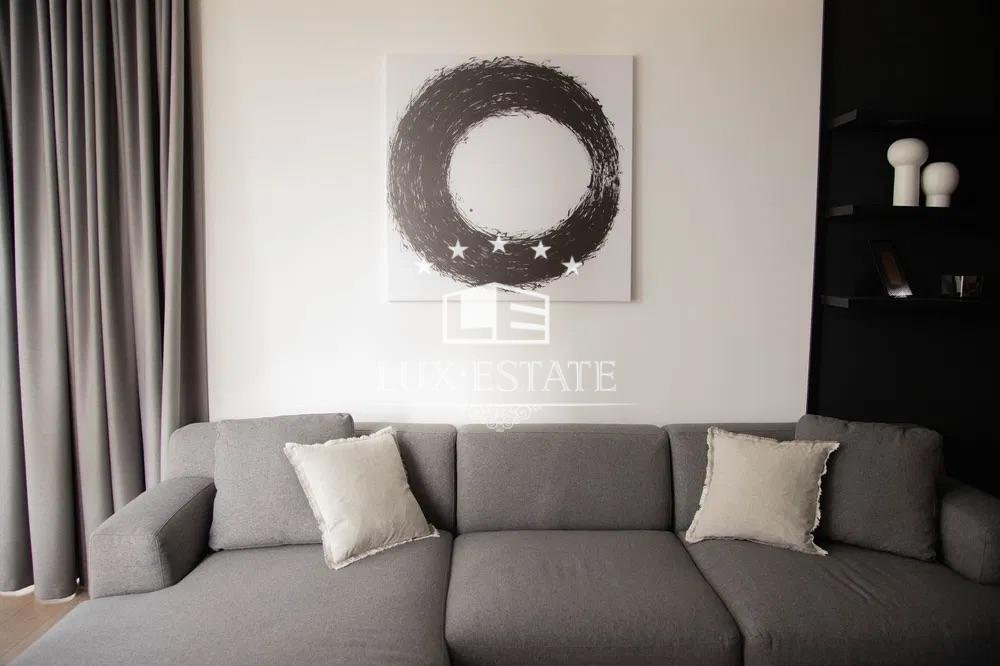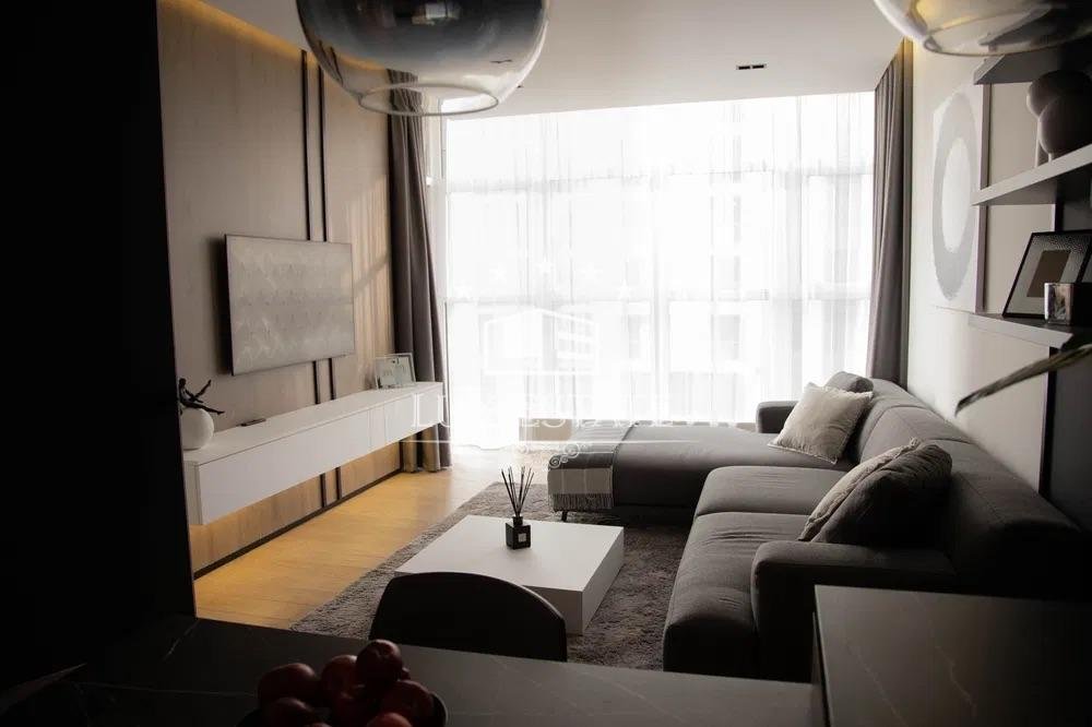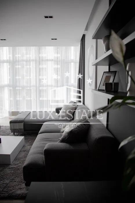 В отделке использованы только качественные материалы. Мебель итальянских производителей, кухонная техника премиальной марки,духовая печь, посудомоечная машина, индукционная варочная поверхность, холодильник/морозильник , канальное кондиционирование, телевизоры: 55″ и 50 «, стирально-сушильная машина, итальянская керамика, паркетная доска из дуба.