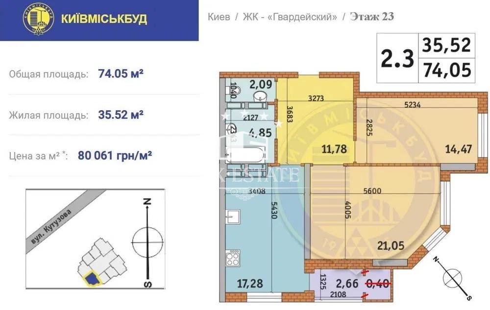 Предлагаем к покупке 2к квартиру в ЖК Гвардейский, общей площадью 74м2.