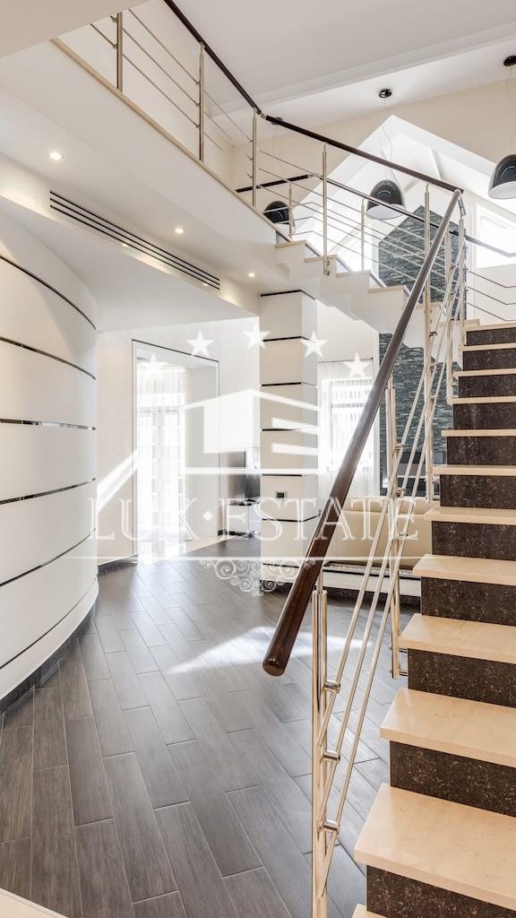 Lux-Estate предлагает арендовать современную резиденцию площадью 790 м² в престижном охраняемом коттеджном городке в Лесниках. Просторный участок, высокий уровень приватности и удобный выезд на Новообуховскую трассу позволяют сочетать загородный комфорт и быстрый доступ к Киеву.