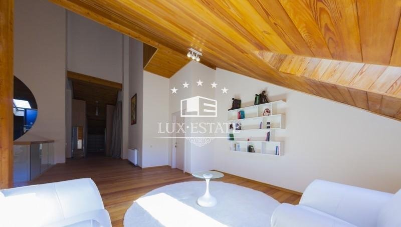Второй этаж оборудован светлой спальней с большими окнами и гардеробной комнатой, санузлом, тренажерами, лаунж зоной с бильярдом.
