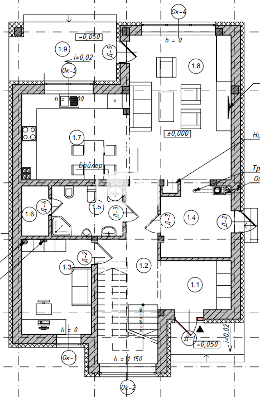 Дом находится в хорошем состоянии и полностью функционален. Фотографии отражают архитектурную концепцию и первоначальный дизайн интерьера. Поскольку объект активно использовался, возможно лёгкое косметическое обновление, которое позволит новому владельцу адаптировать пространство под собственный вкус.