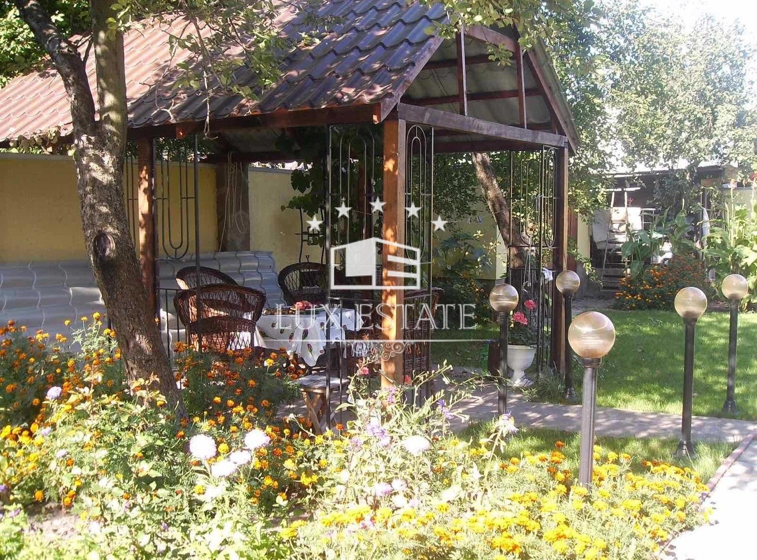 На участке есть беседка для прекрасного досуга.